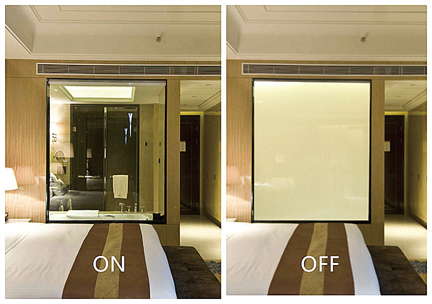 SMART FILM IS A KIND OF WISDOM FILM, THE FILM IS BONDED DIRECTLY TO THE GLASS, AND THEN AFTER A VOLTAGE MAKES THE SMART FILM SHOWING PENETRATION AND MIST, WE ENABLE PEOPLE TO PENETRATE THE GLASS AND PROTECTION DUAL REQUIREMENTS OF PRIVACY, EVEN OPAQUE, LIGHT IS STILL VERY GOOD, IT IS ALL THE CURTAINS CANNOT BE ACHIEVED, AND THE REFLECTION OF LIGHT HAS AN INSULATING EFFECT OF HEAT, MAKING THE ROOM COOL, ENVIRONMENTALLY FRIENDLY ENERGY. IT UTILIZES THE OPTICAL CHARACTERISTICS OF THE LIQUID CRYSTAL, TO ACHIEVE A PHOTOELECTRIC FUNCTIONAL FILM.